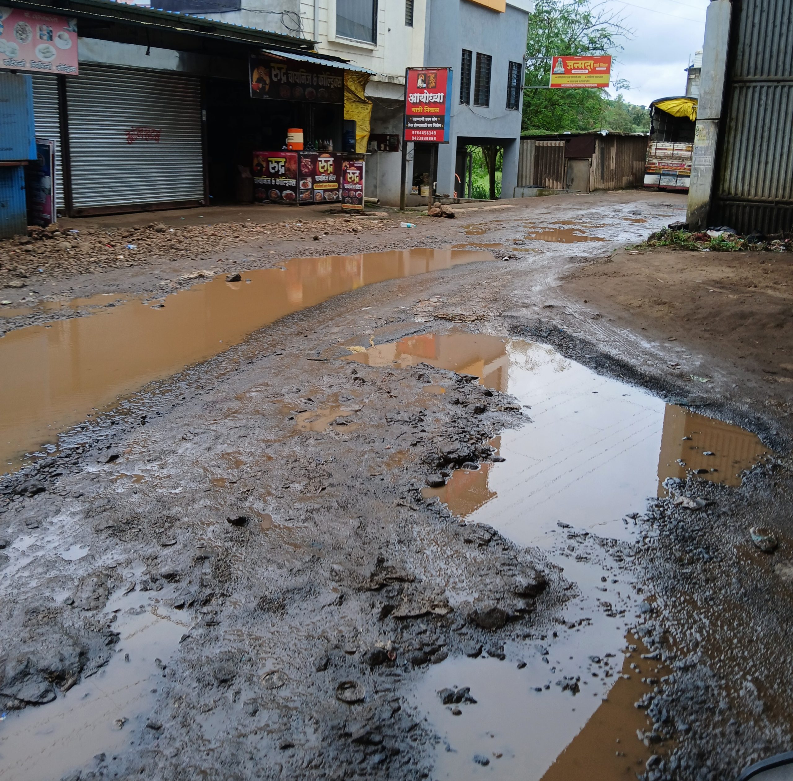 आदमापूरात उड्डाणपूलाचे सेवा मार्ग खड्डयात : पावसामूळे भाविक व प्रवाशांचे प्रचंड हाल